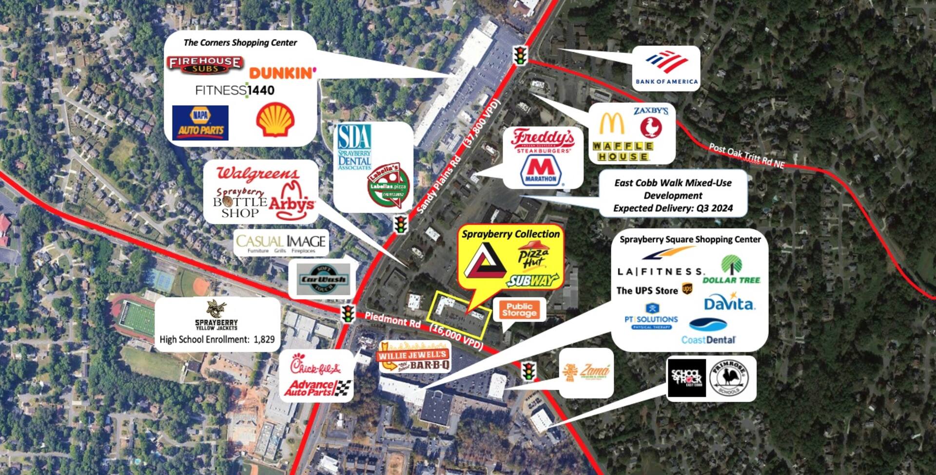 Sprayberry Collection is located close to the busy intersection of Piedmont Rd and Sandy Plains Rd.