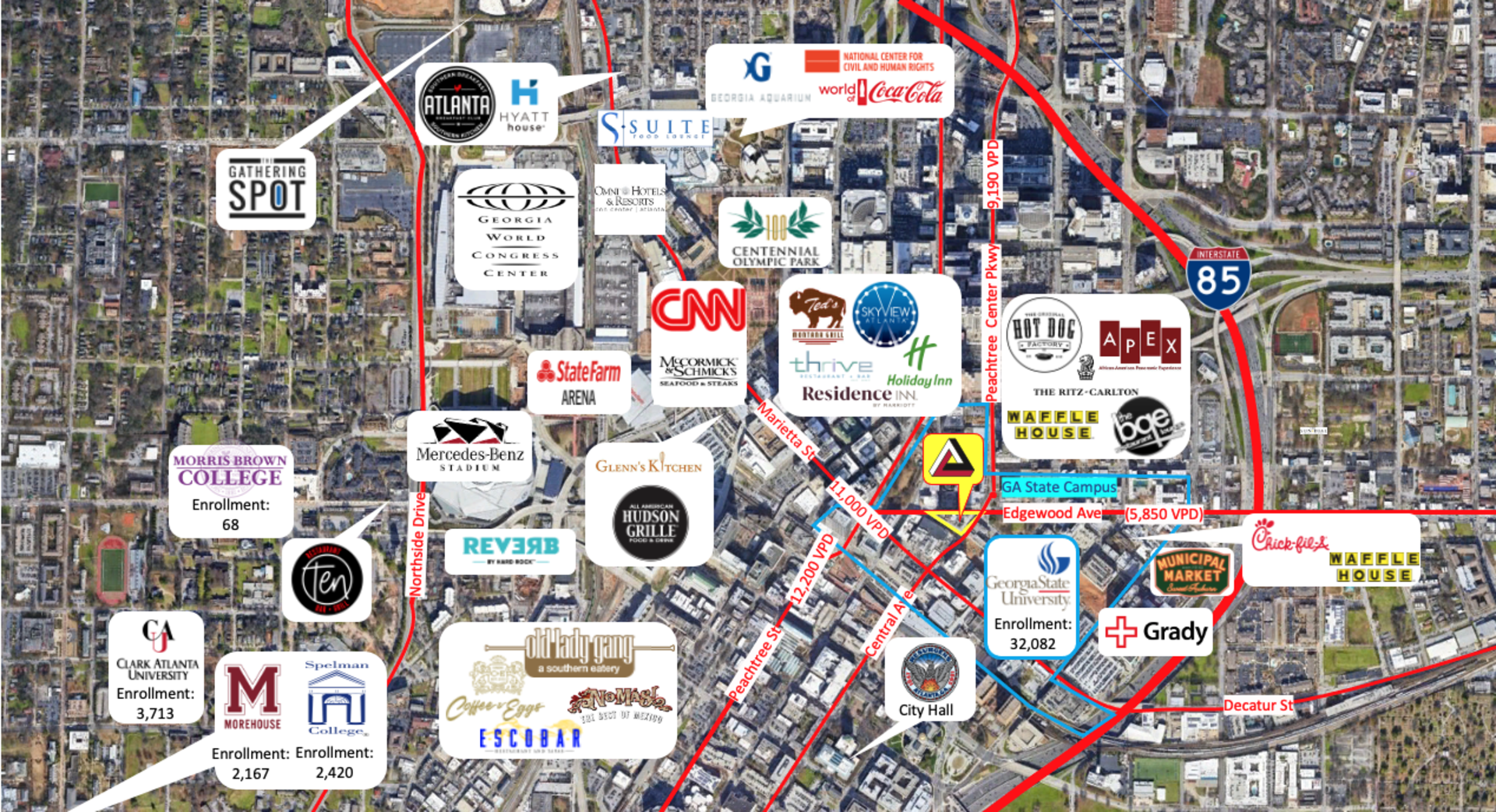The Hurt Building's proximity to the Georgia State University campus, which has 54,000 students and employees, and to the Downtown Office Market strategically places the property in a high-traffic corridor with heavy pedestrian activity.