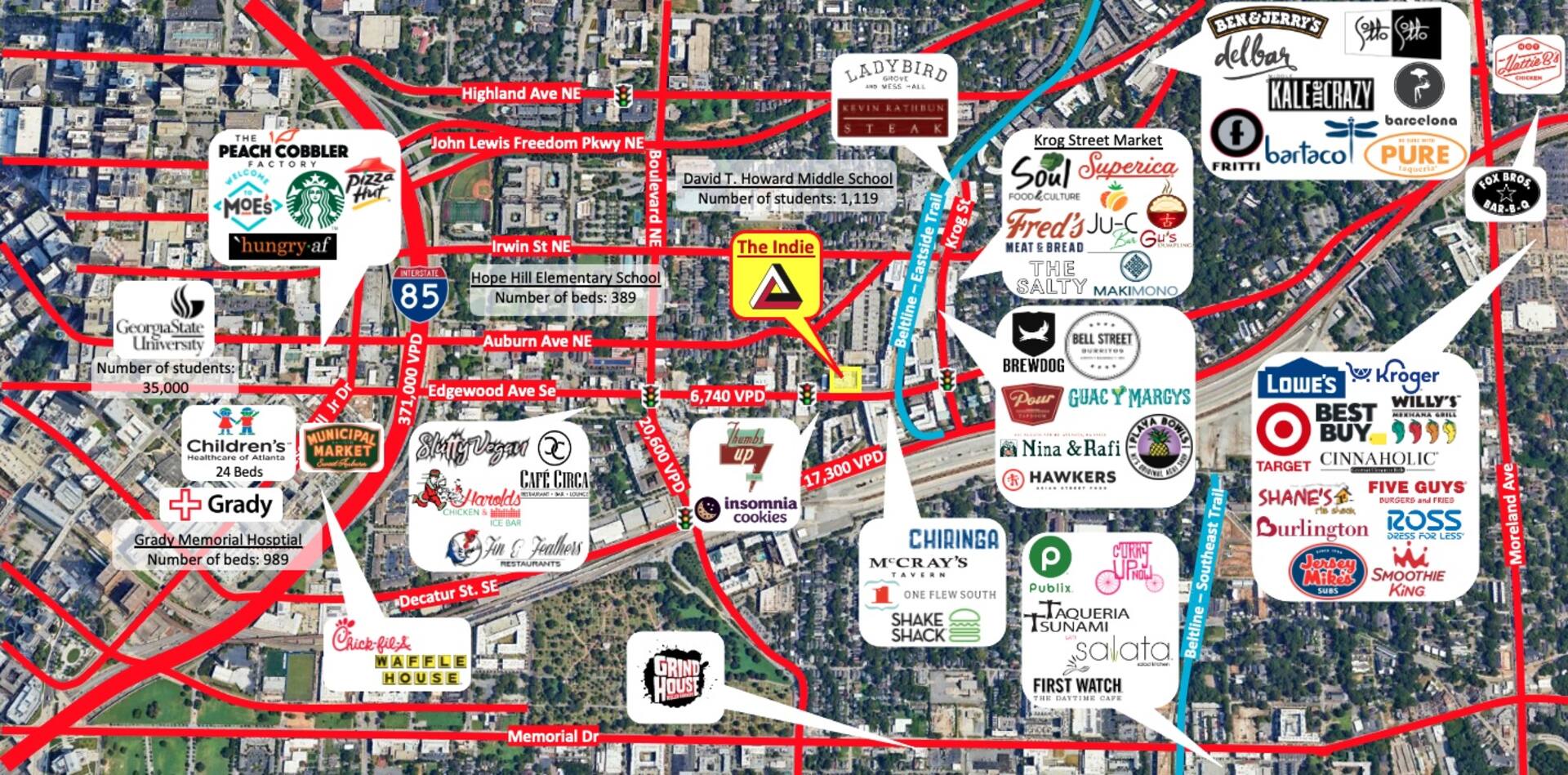 The building is located on Edgewood Ave (6,740 VPD) and close to the intersection at Boulevard NE (20,600 VPD).