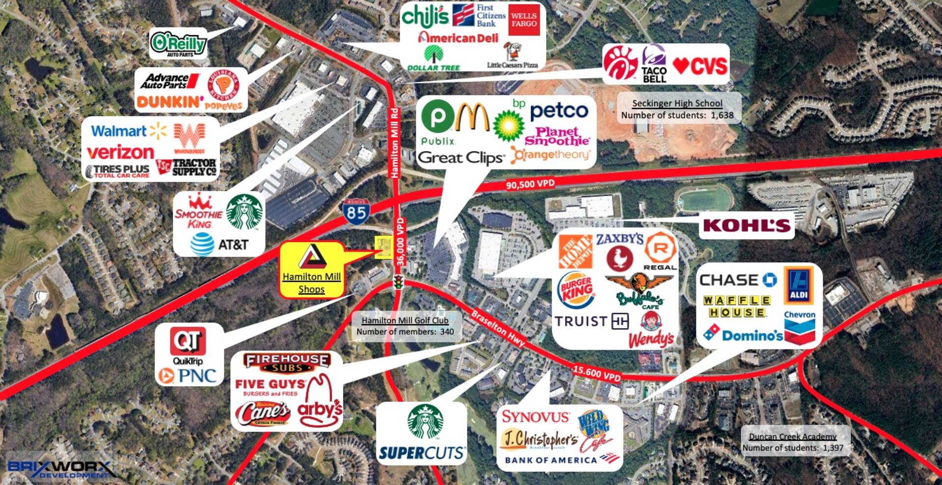 Building is located on Highway 92 (44,600 VPD), close to the intersection at Wade Green Rd (16,300 VPD)