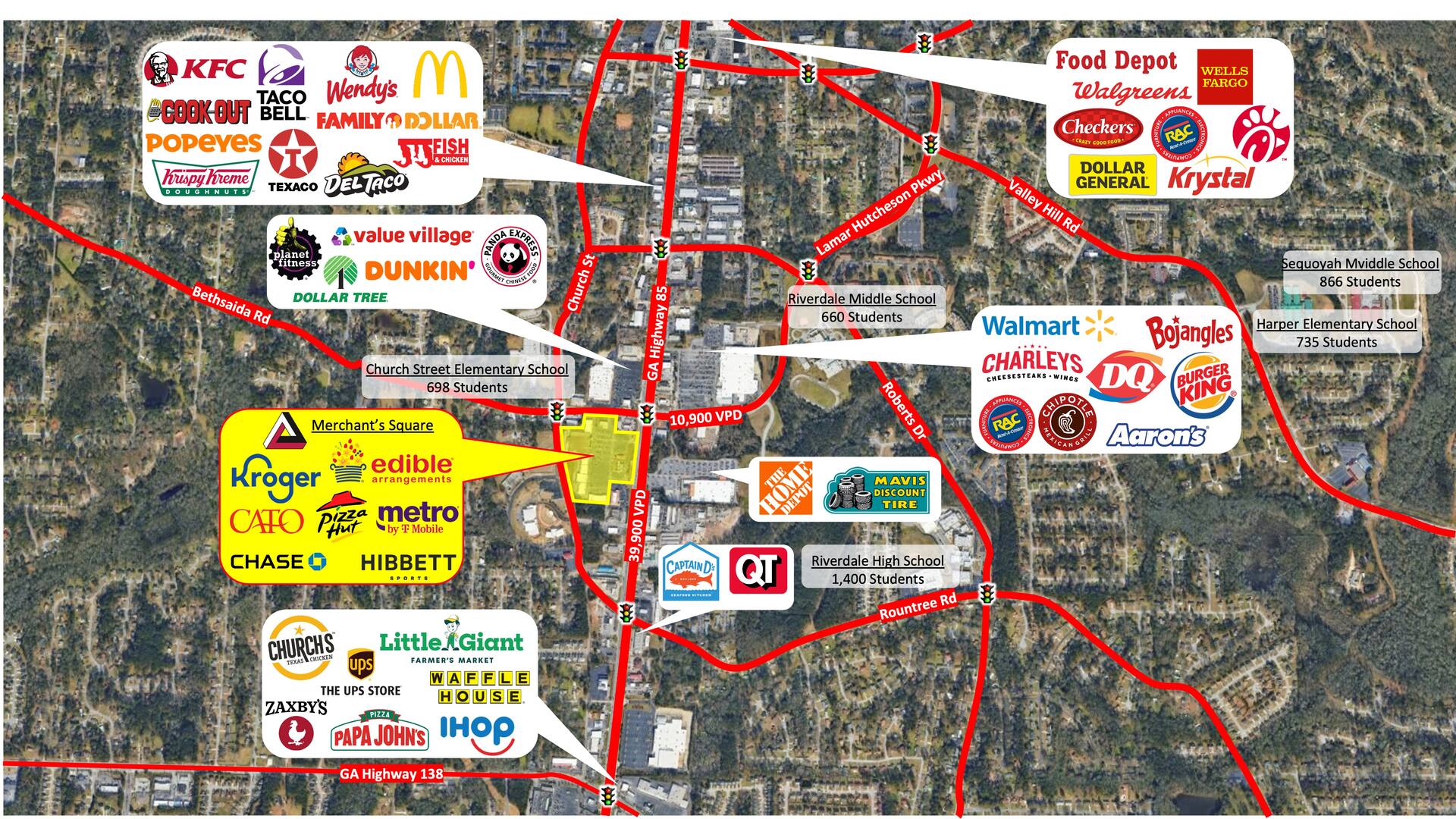 Merchant's Square is a 118,984 SF Kroger-anchored neighborhood center in Riverdale, GA.