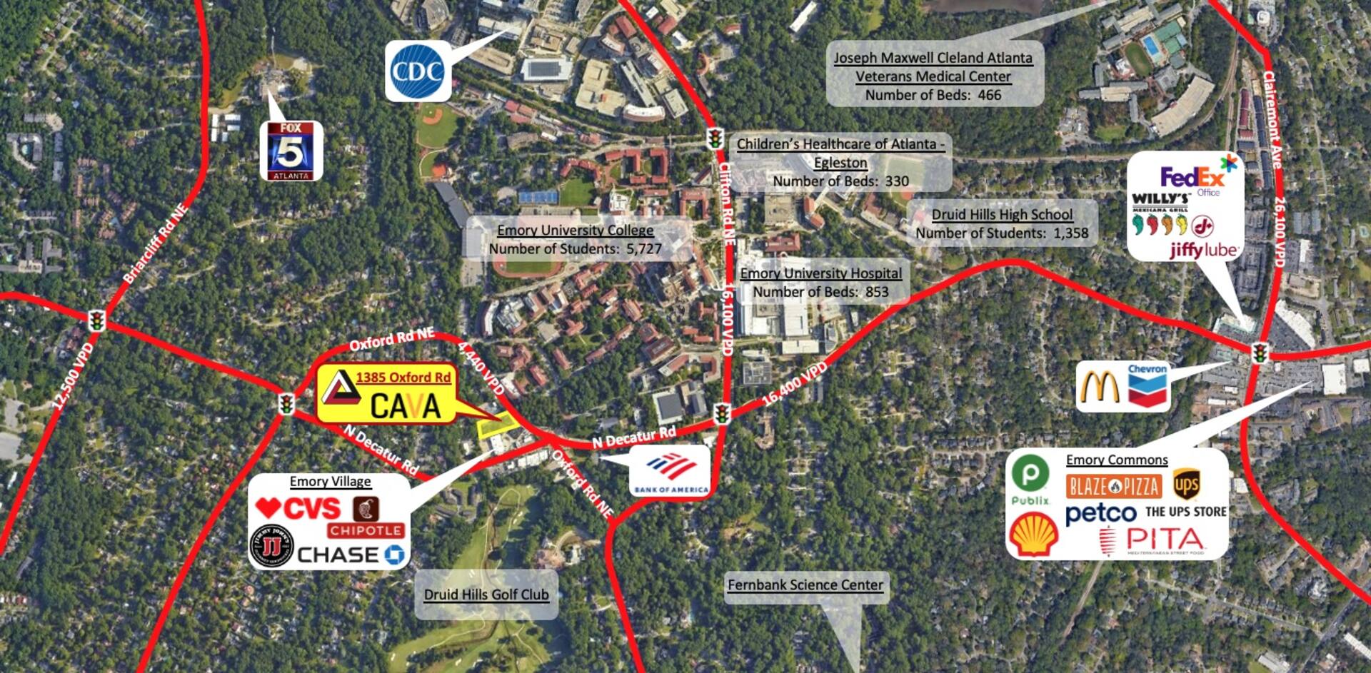 Across the street from Emory University Barnes & Noble Bookstore and Starbucks.