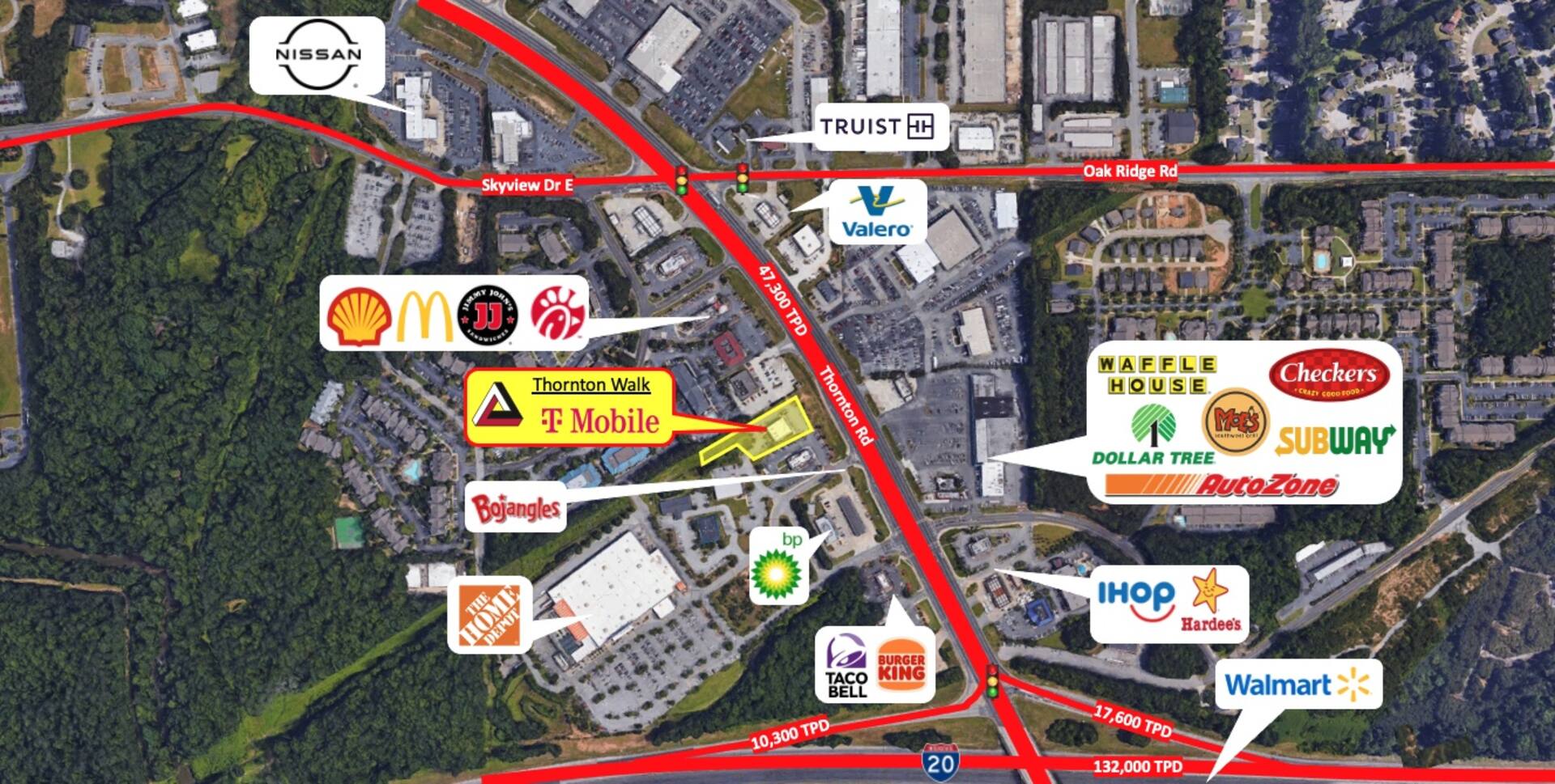 The property is located within a quarter mile of the I-20 on-ramp at Thornton Rd.