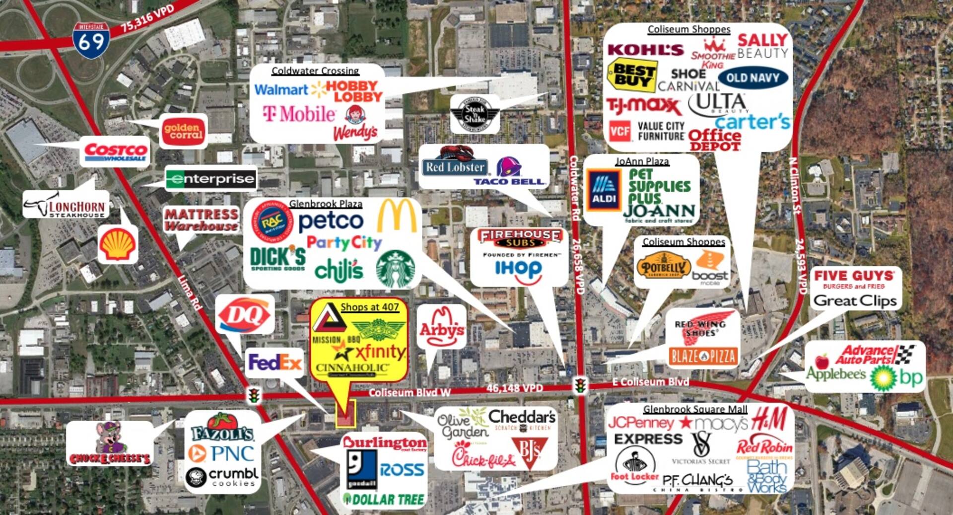 Adjacent to Glenbrook Square Mall, the only super-regional mall in northeast Indiana, which sees over 15 million visitors a year.