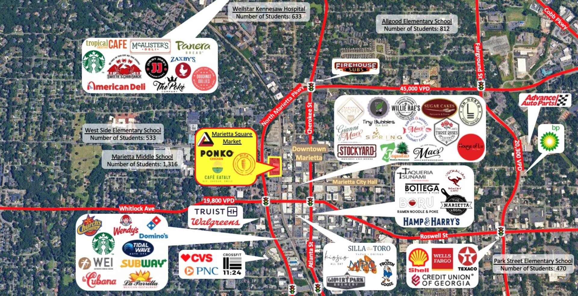 The attractive daytime population (69,595 within 3 miles) is bolstered by the nearby Cobb County government complex and other large economic drivers.